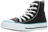 アッパーのパイピング(縁取り)にマルチカラーのストライプ模様を施したポップなオールスター。ヒールラベルも同じくマルチカラー仕様に。シンプルなブラックだからこそ、各パーツのカラフルさがより際立っています。