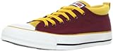 履き口にボリュームを持たせたアクティブシリーズを、スタジアムジャンパー風にアレンジしたオールスター。履き口のリブやワッペン風の織りネーム、カレッジカラーと言ったスタジャンに見られる要素を落とし込んだ1足です。暗めのレッドにイエローを配色したポップなデザイン。
