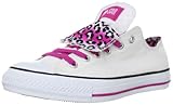 ライニングとシュータン裏にグラデーションがかったレパード(ヒョウ)柄をプリントしたオールスターです。履き方をアレンジできるダブルタン仕様。シンプルなホワイトに差し色としてピンクを配色しています。