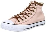 ワークブーツや革靴に用いられるピンキングパーツ:ギザギザの装飾を履き口に施したオールスターです。アッパーはレザーでなく気軽に履けるキャンバス素材を使用。ピンキングと同色のステッチングやブーツシューレース、真ちゅう色のはと目もポイントとなっています。