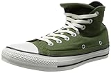 ワークキャップのつばをイメージした長めのシュータンとスタンプ風のアンクルパッチがポイントのオールスター。履き口やソール上のいつもと異なるステッチパターンも特徴的です。アッパーにはミリタリー感あるカーキ色を配色。