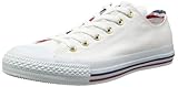 裏柄プリント「INシリーズ」の新作。モデル名のTCは「Tricolor(トリコロール)」の略で、ライニングやソールテープに赤・白・青のボーダー柄を落とし込んだオールスターです。ベーシックなホワイトにゴールドのはと目を使用することでマリンテイストもプラスしています。