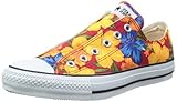 レッドを基調に、イエロー・オレンジ・ブルーの色鮮やかなハイビスカスをアッパー全面にプリントした総柄オールスター。リゾート地のファッションアイテムに見られる柄をイメージしています。OXカットはヒモ無しスリップオンタイプになっています。