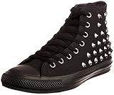 シューズの側面とカカト部分にたくさんの円錐型スタッズを施したインパクトの強いハードロック系オールスター。ブラックモノクロームをベースに、ガンメタリックのスタッズとはと目を採用しています。「HEDGEHOG」とはハリネズミの意。