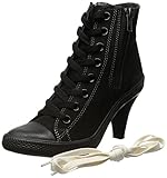 フレンチヒール付きオールスターの第2弾はワーク素材をアッパーに使用しています。改良点として新たにサイドファスナーを施し、脱ぎ履きのしやすさとデザイン性を兼ね備えています。ブラックの替えシューレースも付属。