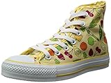 野菜と果物の手書き風イラストをアッパーに散りばめたかわいらしい総柄のオールスター。縁取りとライニングには黄×白のギンガムチェックを使用。エプロンやテーブルクロスなどのキッチンウェアを連想させるデザインとなっています。お察しの通り、VEGEFRUS=VEGETABLE+FRUITSのミックス語。