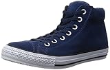 スエード生地を使用したストリート系MID丈オールスター。履き口とシュータンにはふかふかしたフォームを仕込んでボリューム感を出しています。シューレース・アンクルパッチ・ステッチングをネイビーに統一した、クールなアップサイドモノ(シューズ上部が同色)デザインが特徴。