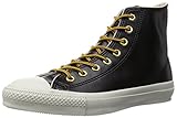アッパーにシンセティックレザー(合成皮革)を用いたワークブーツ風のオールスター。1番上のみ六角形のゴールドはと目、カカトの補強ステッチ、茶色/黄色のツートンカラーの丸シューレースといったブーツに見られる要素を落とし込んでいます。単色ブラックアッパー+ホワイトソールのシンプルなデザインもグッド。