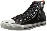 第二次世界大戦中にアメリカ軍が着用していた「A-2フライトジャケット」をモチーフとしたオールスター。上質な本革ジャケットをイメージしたブラックレザー、ライニングのオレンジ、サイドジッパーなどをシューズに落とし込んだ、オールスターのハイクラスモデルです。ロウ引きの平シューレースやカカト上部のステッチ使いも面白いディテール。