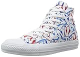 「CONVERSE」のアルファベットをポップな書体で敷き詰めたグラフィカルでキャッチーなオールスター。ホワイトをベースにブルーやピンクを配色しています。クッション性を高めた「リアクト」インソール搭載モデル。