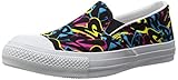 「CONVERSE」のアルファベットをポップな書体で敷き詰めたグラフィカルでキャッチーな紐なしスリップオンオールスター。ブラックをベースに、イエローやピンクと言ったコントラストの強い配色を施しています。クッション性を高めた「リアクト」インソール搭載モデル。