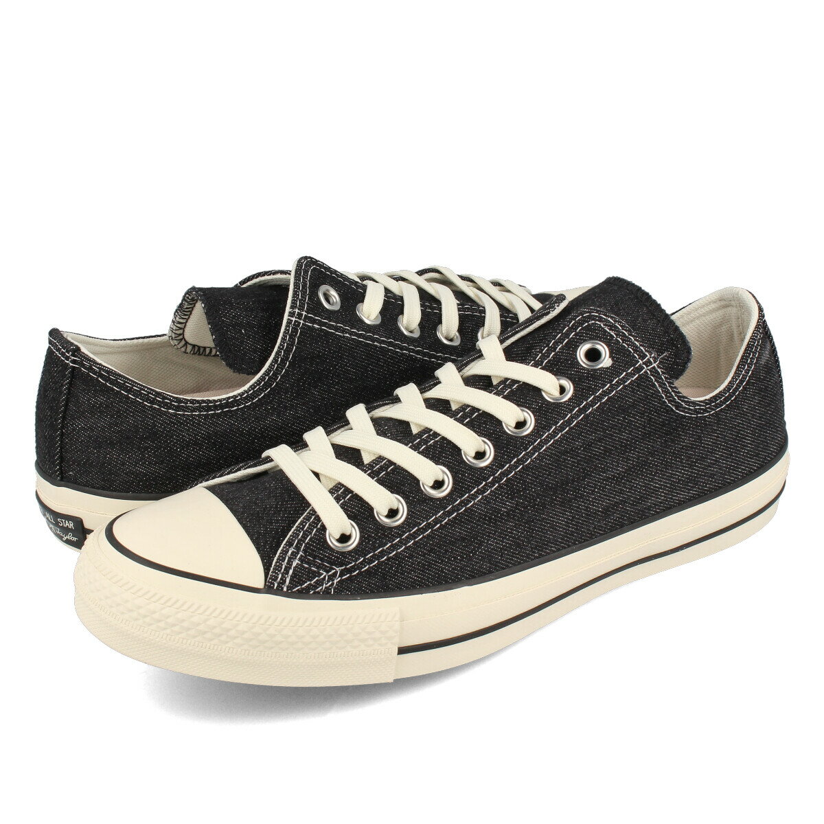 世界有数のデニム生地「岡山デニム」をアッパーに使用したオールスター。洗い加工を施した黒デニムに、生成り色のソールと光沢の強いシルバーのはと目でシックに仕上げた1足です。黒の替えシューレースも付属。