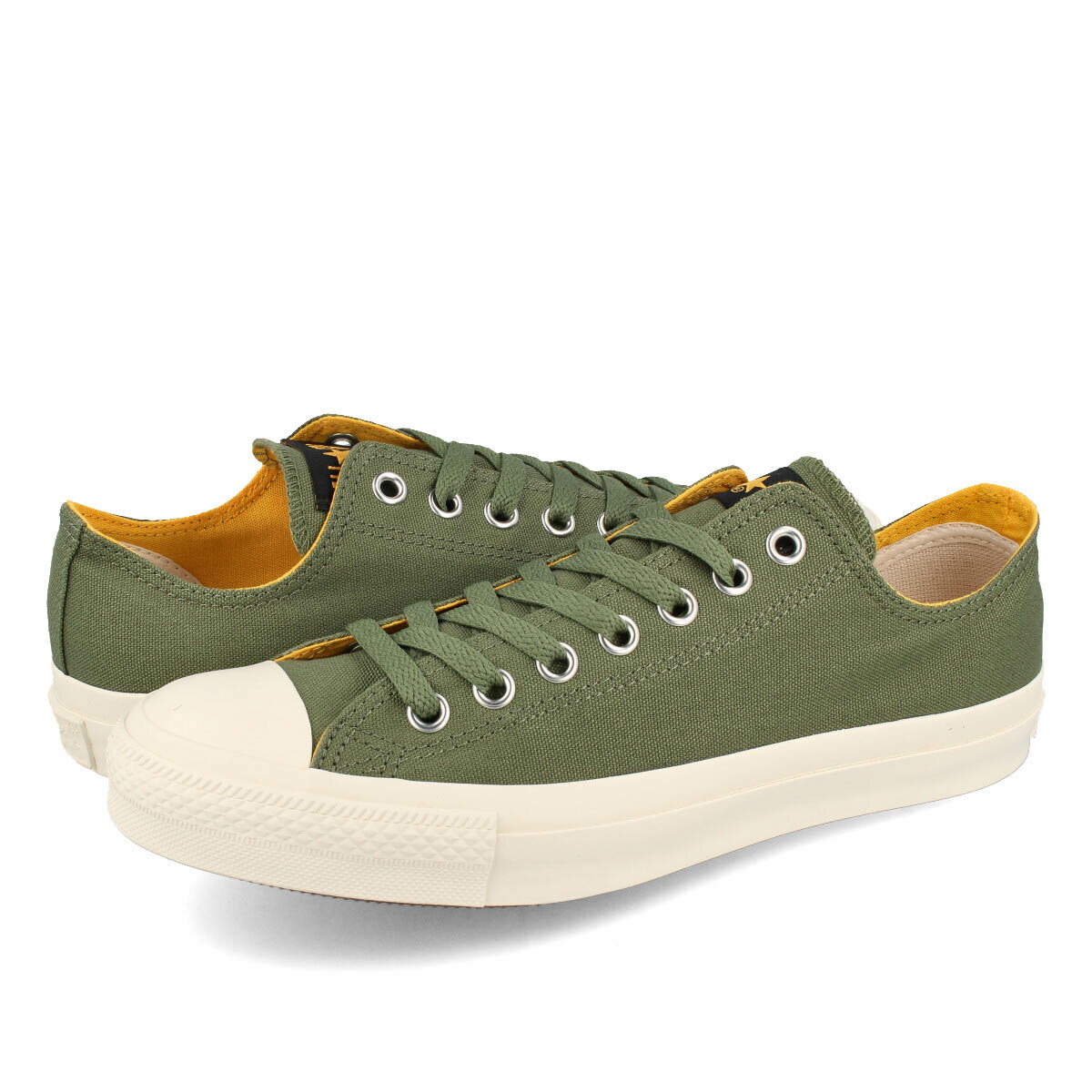 MA-1ジャケットなどに見られる裏地オレンジのディテールを取り入れたオールスター。アッパーにミリタリー感のあるオリーブカラーを用い、ライニングと織りネームにはイエロー/オレンジを差した、シンプルながらも味のあるアイテムです。