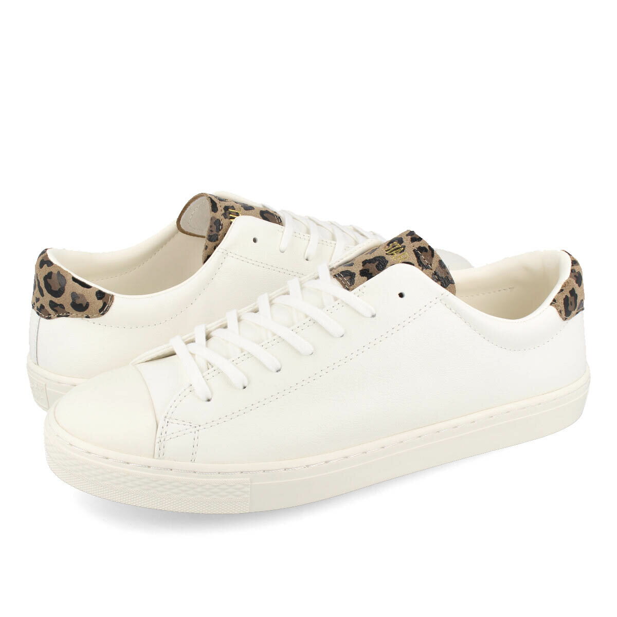 ドレッシーなカップソールを使用した「オールスター クップ」の柄アレンジモデル。シュータンとカカト上部にはスエード素材によるレパード柄を落とし込んでいます。上品なホワイトレザーにポイント使いしたアニマル柄が目を惹く1足です。