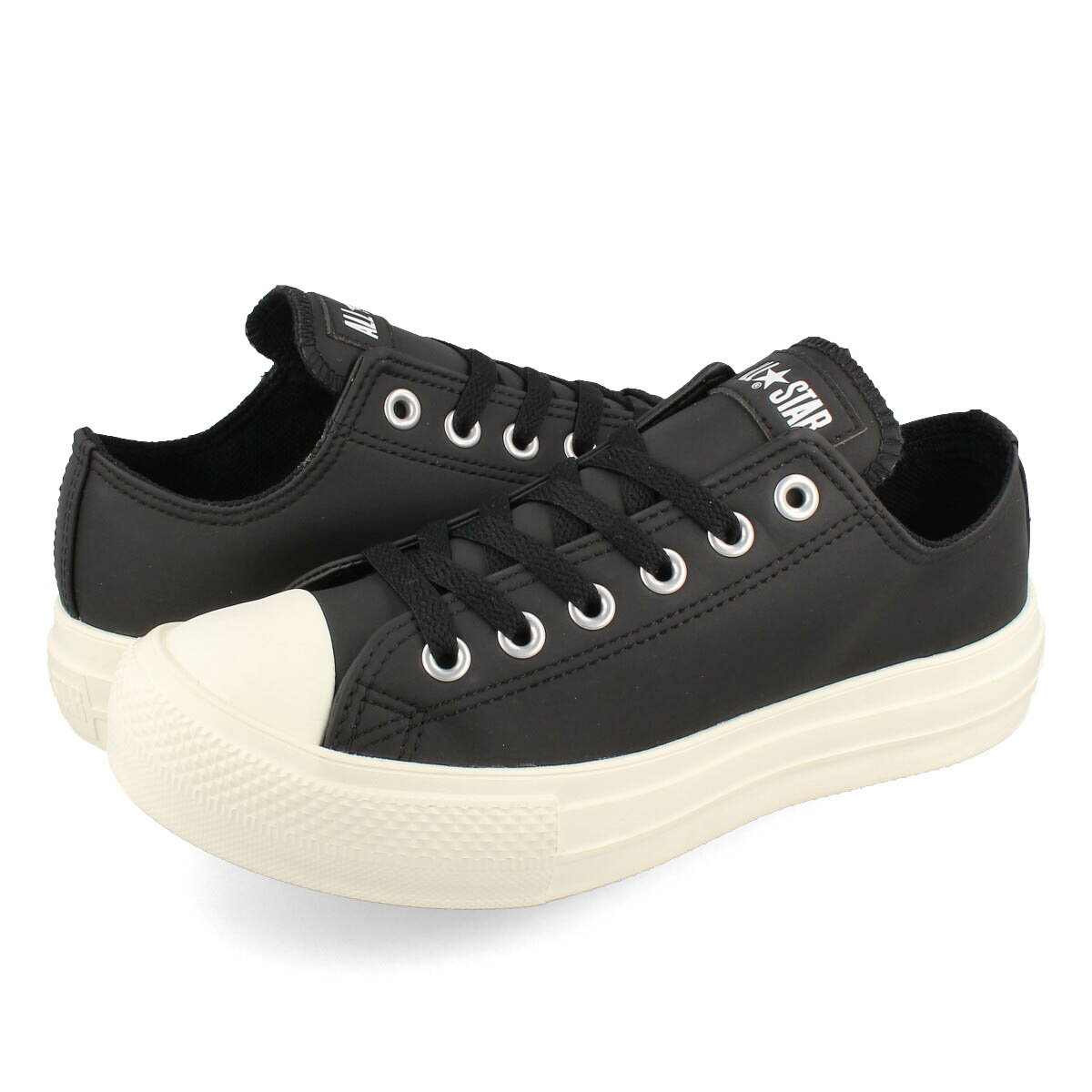 軽量&厚底のソールと、ラバーライクなシンセティックレザーをアッパーに採用したオールスター。撥水素材とガセット付きのシュータンで水の侵入を防ぎ、雨の日でも履ける仕様に仕上げています。ベーシックなブラックを配色。